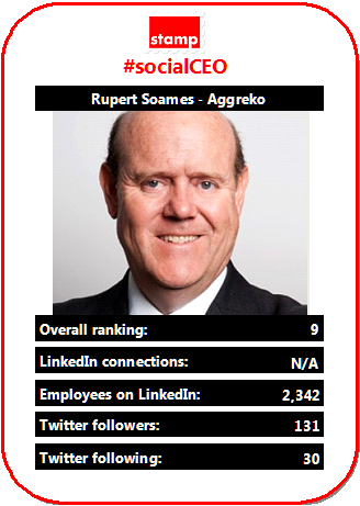 Continuing our countdown of the top ten #socialCEOs (based our October 2013 report data) and at number 9 the head of mobile energy generating company Aggreko, Rupert Soames.